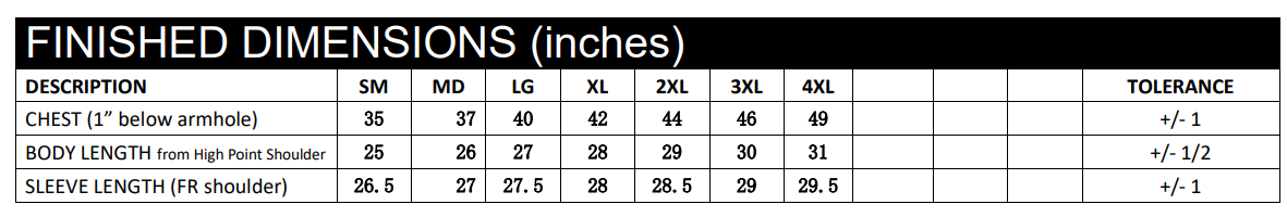 S-4XL (upcharges apply for 2XL-4XL)
